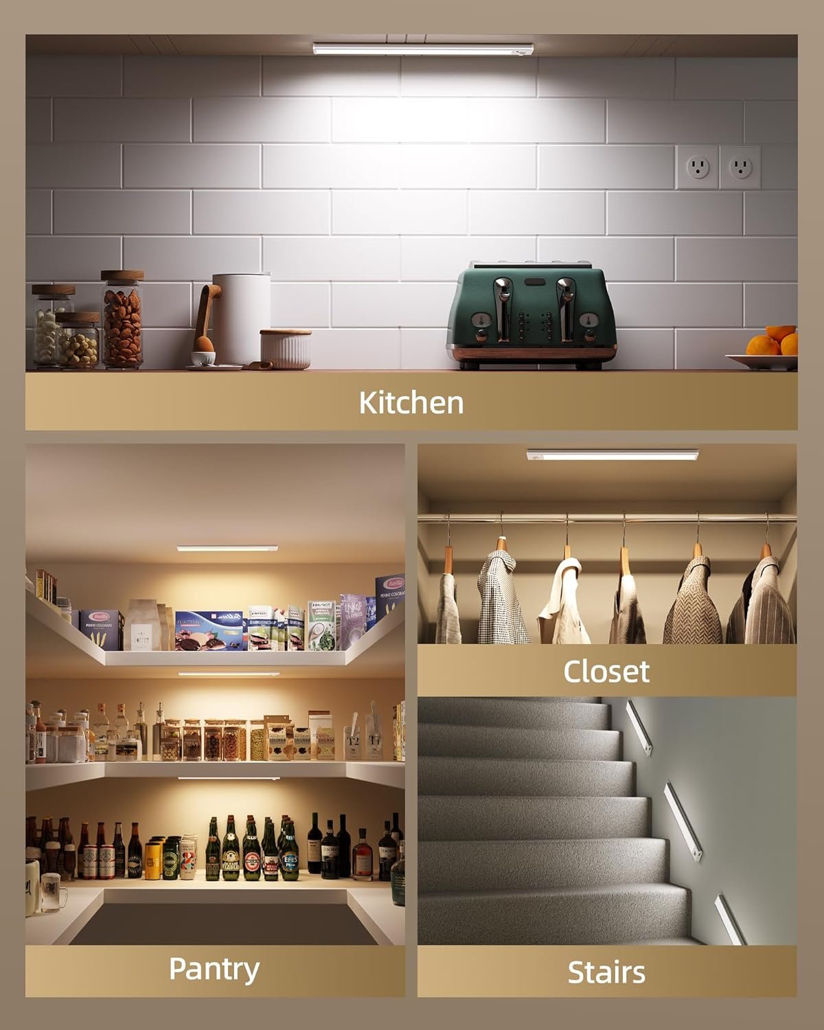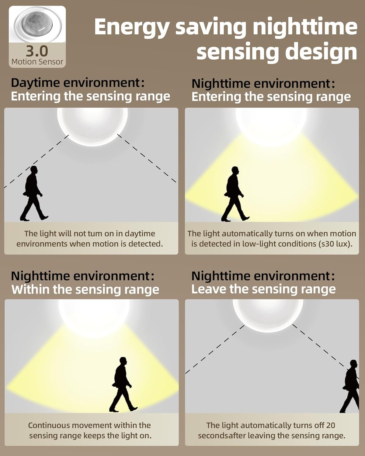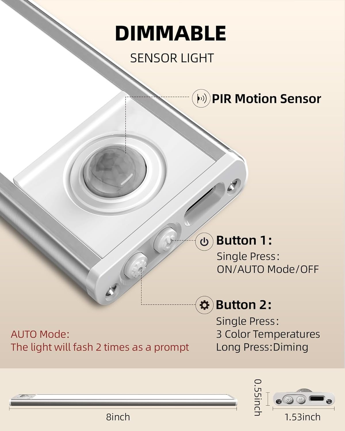 Illuminate your home effortlessly with these motion sensor LED under-cabinet lights, designed to combine convenience, elegance, and energy efficiency. Equipped with advanced PIR motion detection, they automatically light up when motion is detected within 10 feet and turn off after 20 seconds of inactivity — perfect for saving energy while keeping your spaces well-lit.