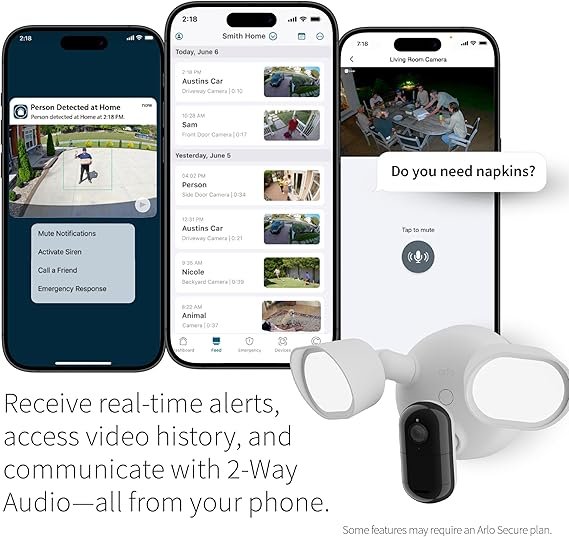 Secure your home with the Arlo Wired Floodlight Camera, featuring 2K HDR video for crystal-clear monitoring and a bright 2000-lumen floodlight for superior visibility. With a wide 160° field of view, color night vision, two-way audio, and an integrated siren, it provides comprehensive outdoor protection. Weather-resistant and easy to install with continuous wired power, this smart security solution ensures peace of mind day and night. Upgrade your home security today with Arlo’s trusted technology.