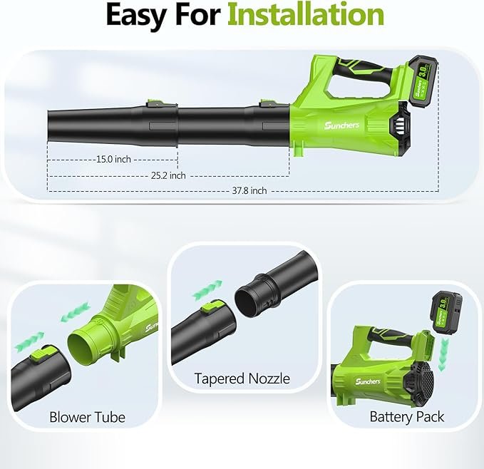 The 990,000 RPM Cordless Leaf Blower is a high-performance, lightweight solution for effortless yard maintenance. Equipped with a brushless motor, it delivers powerful airflow exceeding 50 meters per second, ensuring efficient leaf and debris removal. The included 21V 4.0Ah batteries provide extended runtime, while the ergonomic design ensures comfortable handling. Ideal for homeowners seeking a reliable and eco-friendly tool for lawn care.