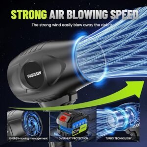 The 990,000 RPM Cordless Leaf Blower is a high-performance, lightweight solution for effortless yard maintenance. Equipped with a brushless motor, it delivers powerful airflow exceeding 50 meters per second, ensuring efficient leaf and debris removal. The included 21V 4.0Ah batteries provide extended runtime, while the ergonomic design ensures comfortable handling. Ideal for homeowners seeking a reliable and eco-friendly tool for lawn care.
