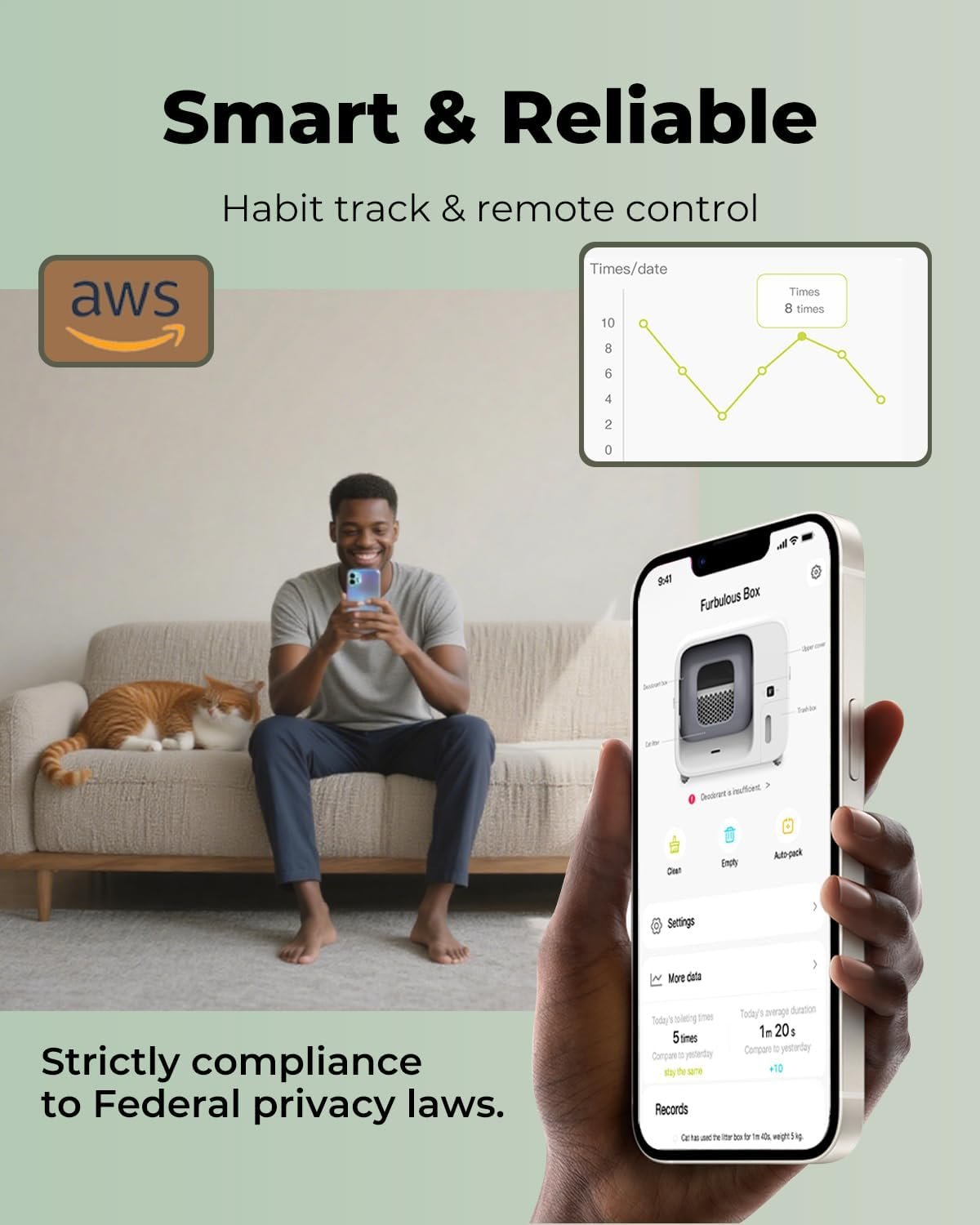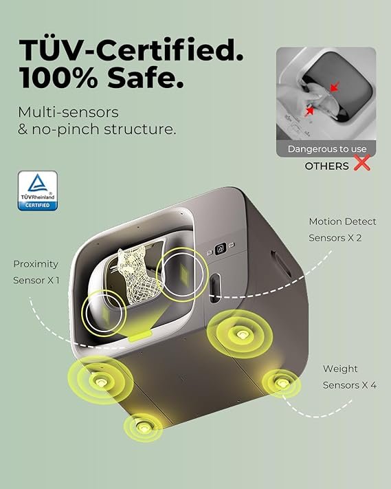 The Furbulous True Odor-Free Self-Cleaning Litter Box offers a hygienic and convenient solution for cat owners. Designed for cats weighing between 3.3 to 22 lbs, it features an automatic self-cleaning system that minimizes odors and reduces the frequency of manual scooping. The integrated app control allows for remote monitoring and management, ensuring a clean environment for both you and your pet.
